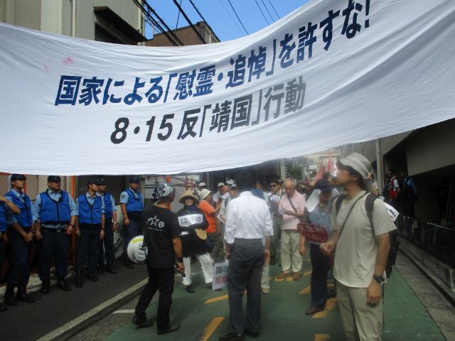 侵略のシンボル靖国神社いらない!とアピール(8.15文京)