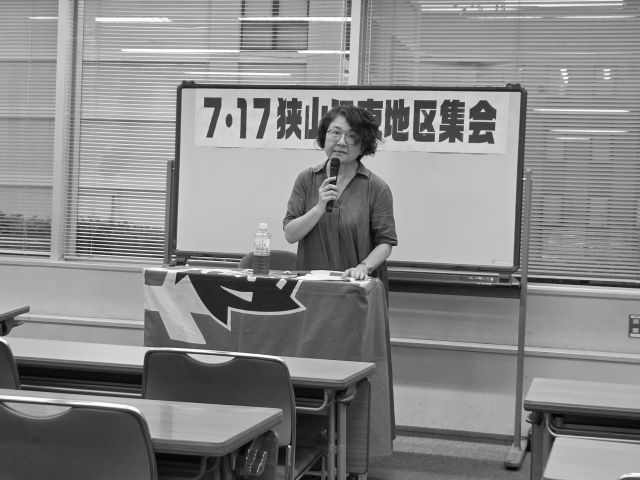 【東京】7月17日午後6時半から、狭山江東地区集会が部落解放江東共闘会議の主催で開かれた。再審請求人の石川一雄さんが3月11日に急逝し、第三次再審請求がいったん終わりになったが、妻の早智子さんがただちに引継ぎ、第四次再審請求が行われ受理された。石川一雄さんの再審開始と無罪を求める闘いは続いている。江東共闘会議は1984年結成以来、JR亀戸駅頭での「23狭山デー情宣活動」を継続し、地区集会も石川さんの仮出獄2年後から続けている。