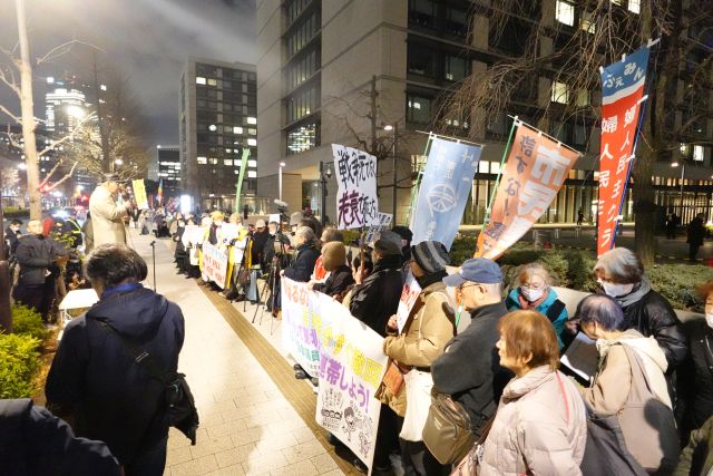 【東京】12月19日、戦争させない・9条壊すな!総がかり行動実行委員会と9条改憲NO!全国市民アクションは、衆院第二議員会館前で「戦争煽るな!高市発言今すぐ撤回!憲法いかして東北アジアと連帯しよう!12・19国会議員会館前行動」を行い、750人が参加した。