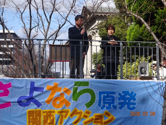 【大阪】福島第一原発事故から15年、原発回帰は間違いだ、原発やめて!核燃サイクル中止を求めるさよなら原発関西アクションが3月8日、大阪中之島公園女性像前で開かれ、400人の市民が参加した。