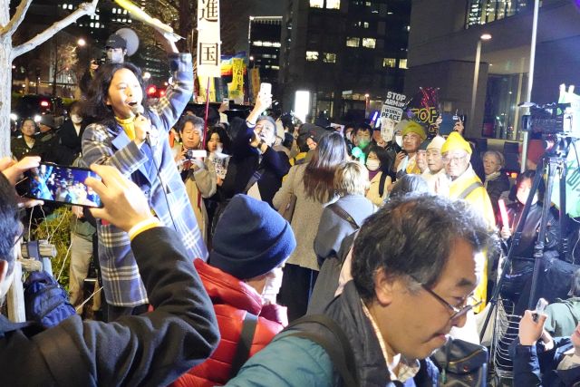 山添拓参院議員(日本共産党)は、「高市政権の危険な暴走に対して最近駆けつるようになった、今日初めて参加した方がおられます。今黙っていることはできない。高市首相が訪米しているが、今やらなければならないことはアメリカに対してイラン攻撃をやめろと言うべきだ。スペイン、イタリア、NATOの同盟国からも批判の声があがっている。高市首相は『法的評価ができない。詳細な情報がない』などと国会で逃げ回って訪米した。法的評価ができないのではなく、するつもりがないということだ。戦争をやめろということが今一番必要なことだ」と発言した。