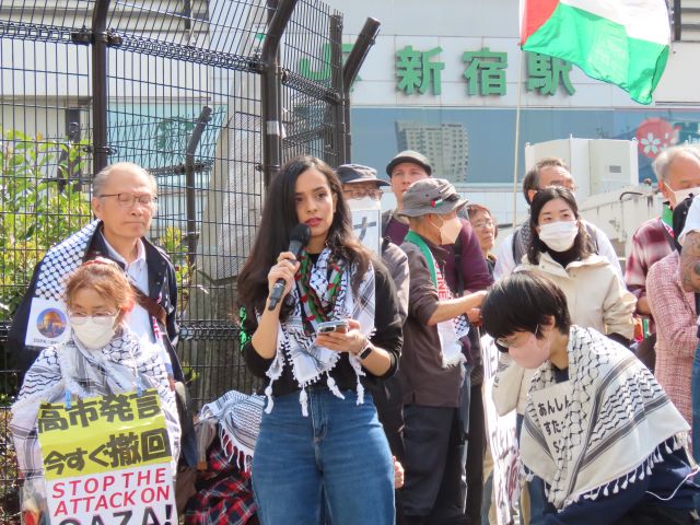 そして「日本政府にイスラエルとアメリカの国際法違反への協力をやめるように求める。日本がアジアの国々とアイヌモシリや琉球弧から収奪することを許し、いま沖縄を米軍の出撃拠点とさせてしまっている」と、日本の立ち位置を明らかにし、「パレスチナ解放というが、植民地主義と構造的差別を変えるために、何ができるのか。様々な行動を続けていこう」と訴えた。