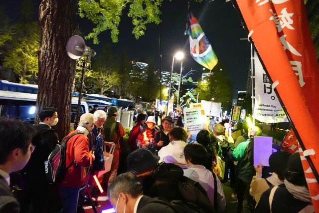4月17日、「市民総監視のスパイ防止法・国家情報局法案反対!4・17議員会館前ペンライト行動」が経済安保法に異議ありキャンペーン、秘密保護法対策弁護団、「秘密保護法」廃止へ!実行委員会、改憲問題対策法律家6団体連絡会、憲法9条を壊すな!実行委員会、肉球新党、日本マスコミ文化情報労組会議(МIC)の呼びかけで行われ、3500人が参加した。