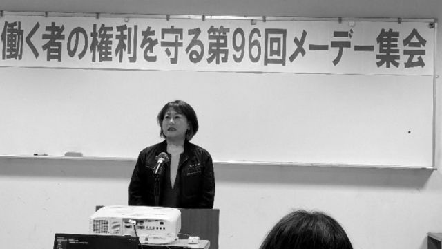 【福島】今年の「働く者の権利を守るメーデー集会」は、関西生コン労組へのすさまじい弾圧と闘ってきた女性組合員を描いた映画「ここから」上映と闘いの報告だった。映画は、荒木さんをはじめ組合員の日常の姿、差別、弾圧に負けず闘う動き、発言を淡々と追ったものだ。報告には映画の主人公、荒木聖子さんと全日建運輸連帯の小谷野委員長が立った。