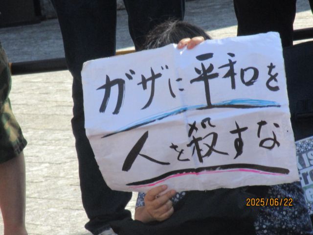 「ジャパン・ヘルスケア・フォー・パレスチナ」の人も発言した。 「私の母親は4年前に亡くなったんですけど、第2次世界大戦のときに焼夷弾(しょういだん)が背中にあたって負傷者としていきてきました。いつもいってたのが戦争がはじまったら、戦争のうずの中にはいってしまったら、誰もとめることができない。各国のリーダーがどのように先導するかで変わってくるっていうのをいつもいってました。私は、このイラン攻撃は1つはガザのジェノサイド、民族浄化の飢餓を隠ぺいする1つの方法でやってるのかなと思いました。とにかくほんとに1人でも多くの日本人の人が日本政府に平和をうったえるたたかいをしないかぎりどうもならないって思ってます。いっしょにがんばりましょう」。